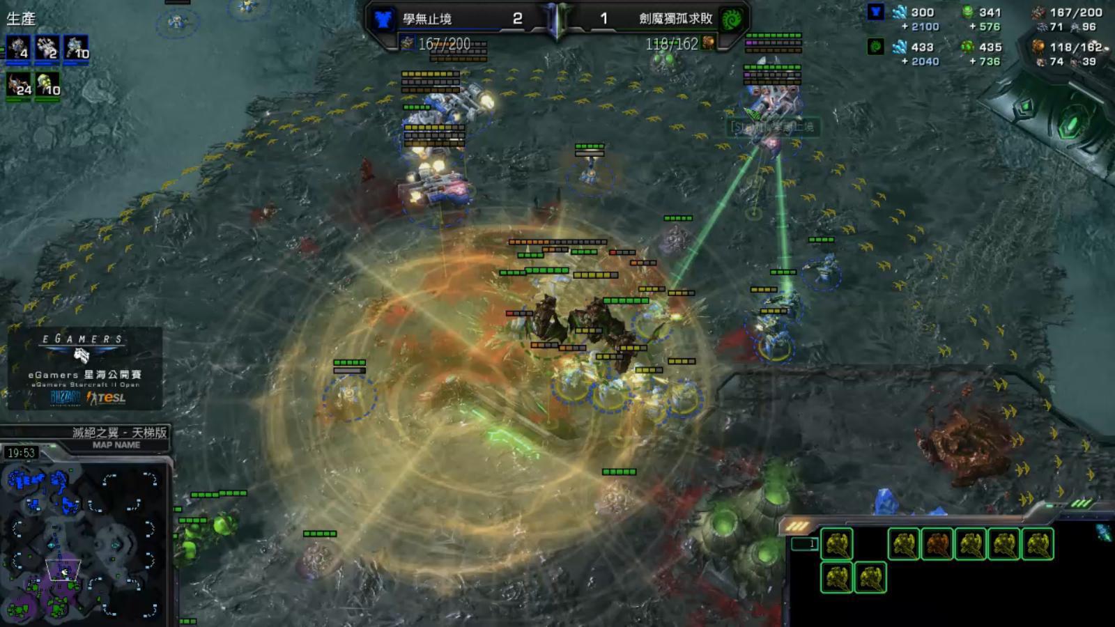 揮。15分鐘就達到170人口的部隊,以正面將蟲族的部隊給擊潰,將比賽導入第三局。