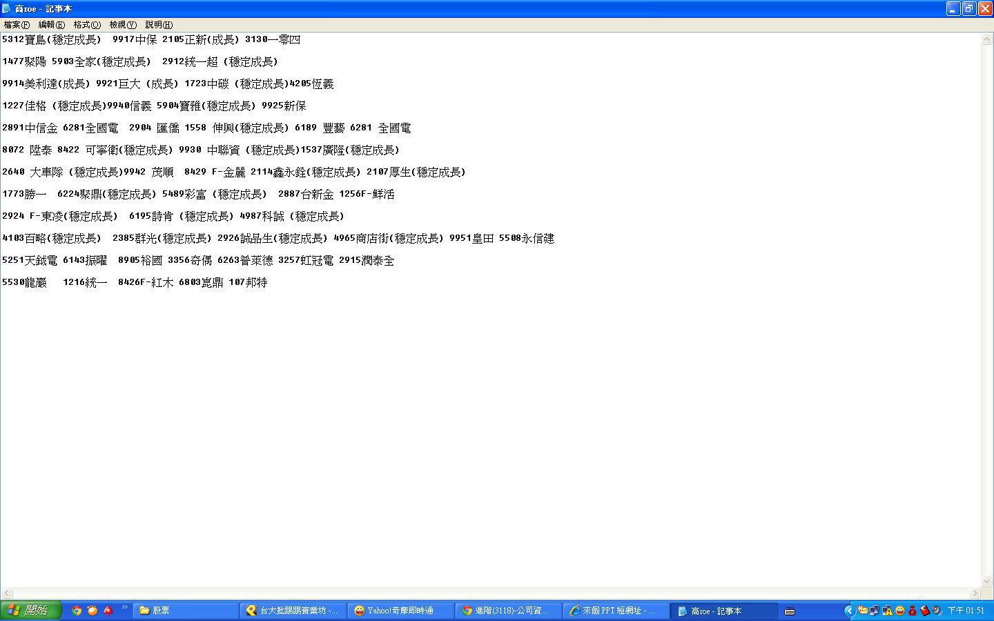 : 口袋名單而已 算是各產業中的績優股