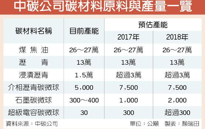 他表示,屆時,中碳的碳材料營收,占整體營收的比率,將從目前的6%左右,提高到2017