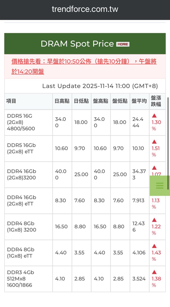 以前是大家關心海運運價 現在是關心記憶體報價 XD