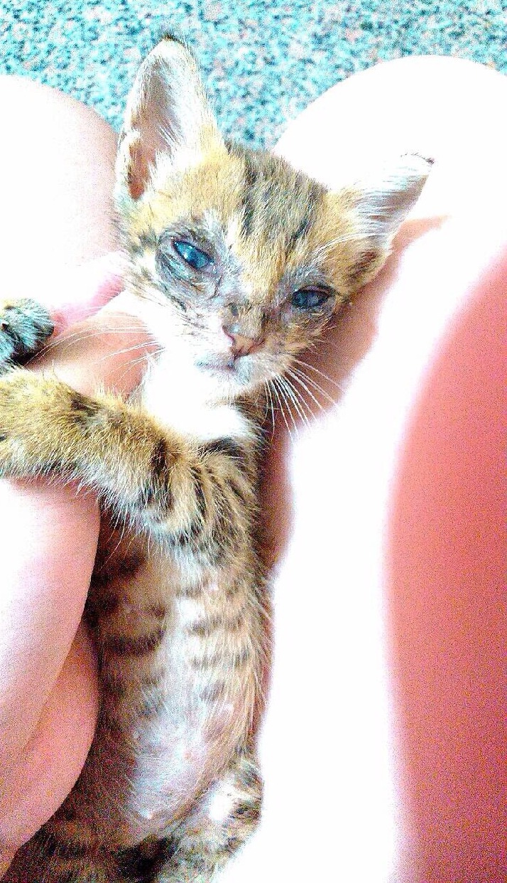 小虎斑的眼睛目前有點腫腫的,之後可能需要點眼藥水,讓小貓