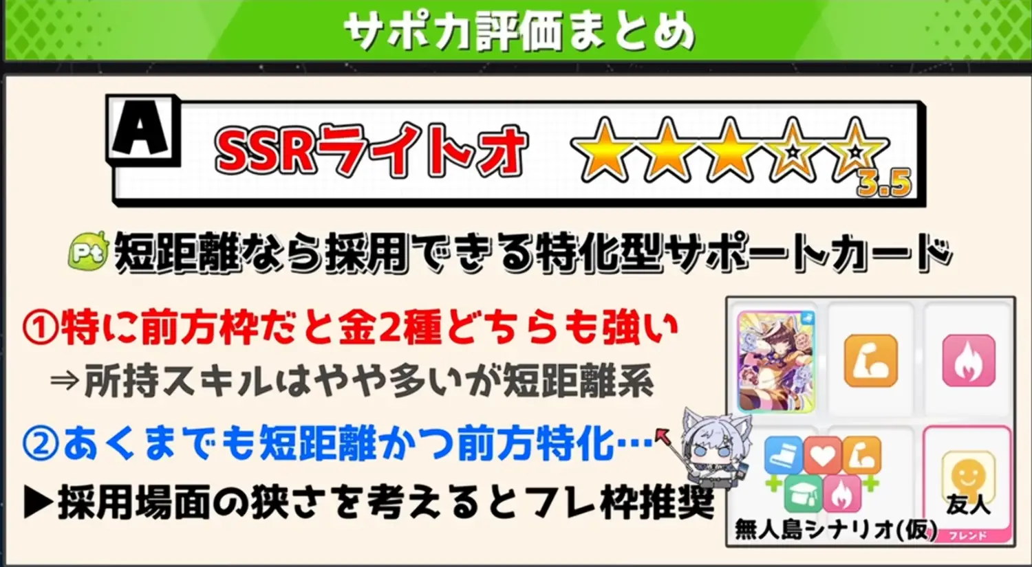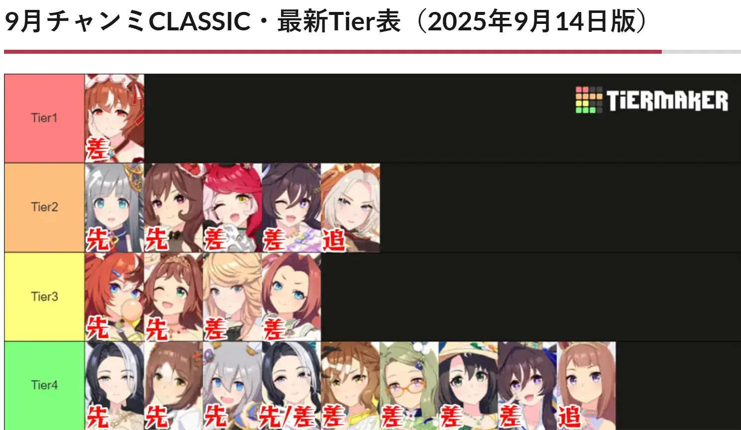 2025-08-13 19:28:00謀勇現在的問題不就本馬不能用 阿 沒本馬 那沒有問題差馬本身現在弱勢腳質值不值得花資源是主要原因不過我覺得要練差馬現階段甚至是往後謀勇應該都不會這麼快退環境 即便技能包差 pt+2的價值就擺在那邊強擊也不用太悲觀吧 我印象中去年超得券是可以換到根殿下對比去年這時段是出支援卡沒有馬 今年是出馬沒支援卡反正就算沒得選 5週年總能選吧(X