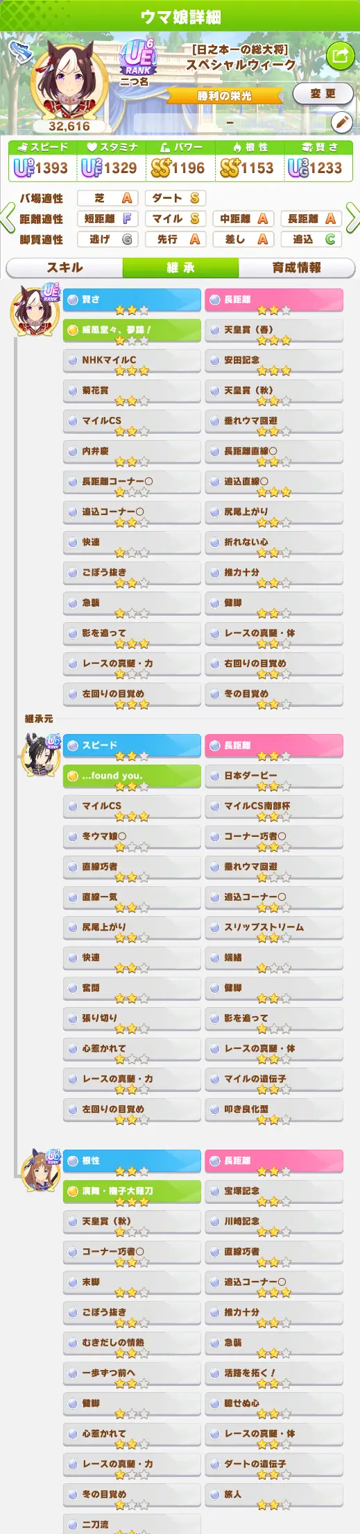 2025-09-21 11:29:00昨天野房跑20場贏了4場 想問一下愛惜的中盤固有繼承是不是優先度遠大終盤 有拿新宇宙固有但常常開頭跑後面然後過終彎時只有第3或第4 不管有無紅馬感覺很難反超對面愛惜