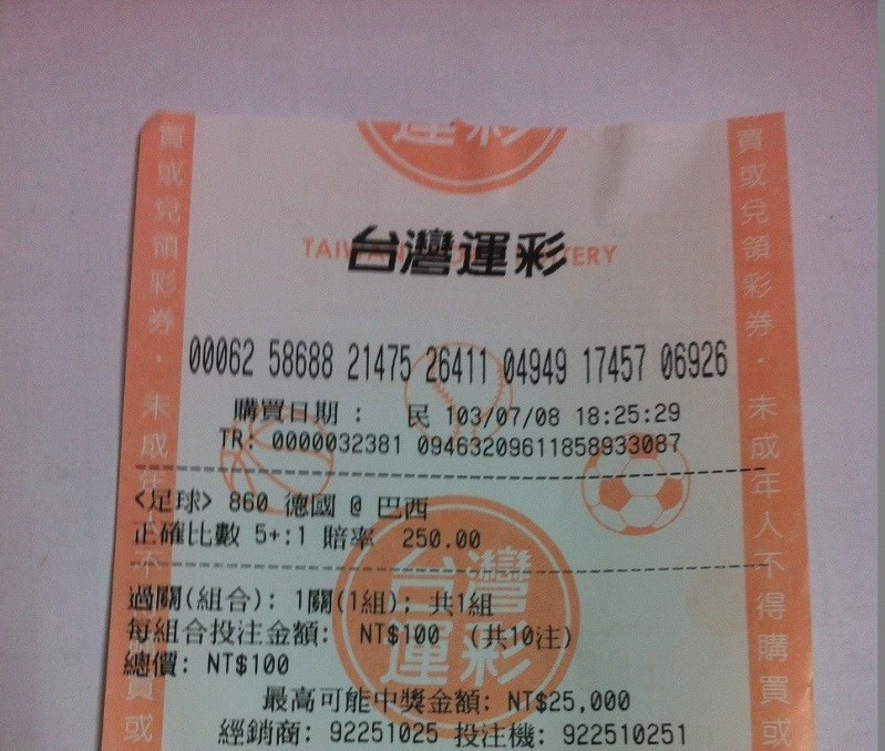 繼某位賭蘇牙咬人賭中的賭徒,巴西也有人賭中1-7慘敗的四強決賽
