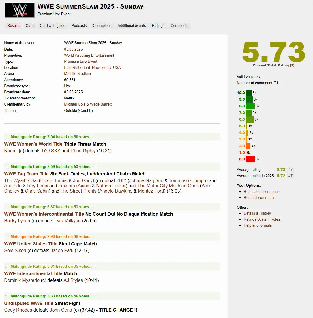 2025-08-09 00:39:00Cena這場竟然是5星 還以為dave只給4.75