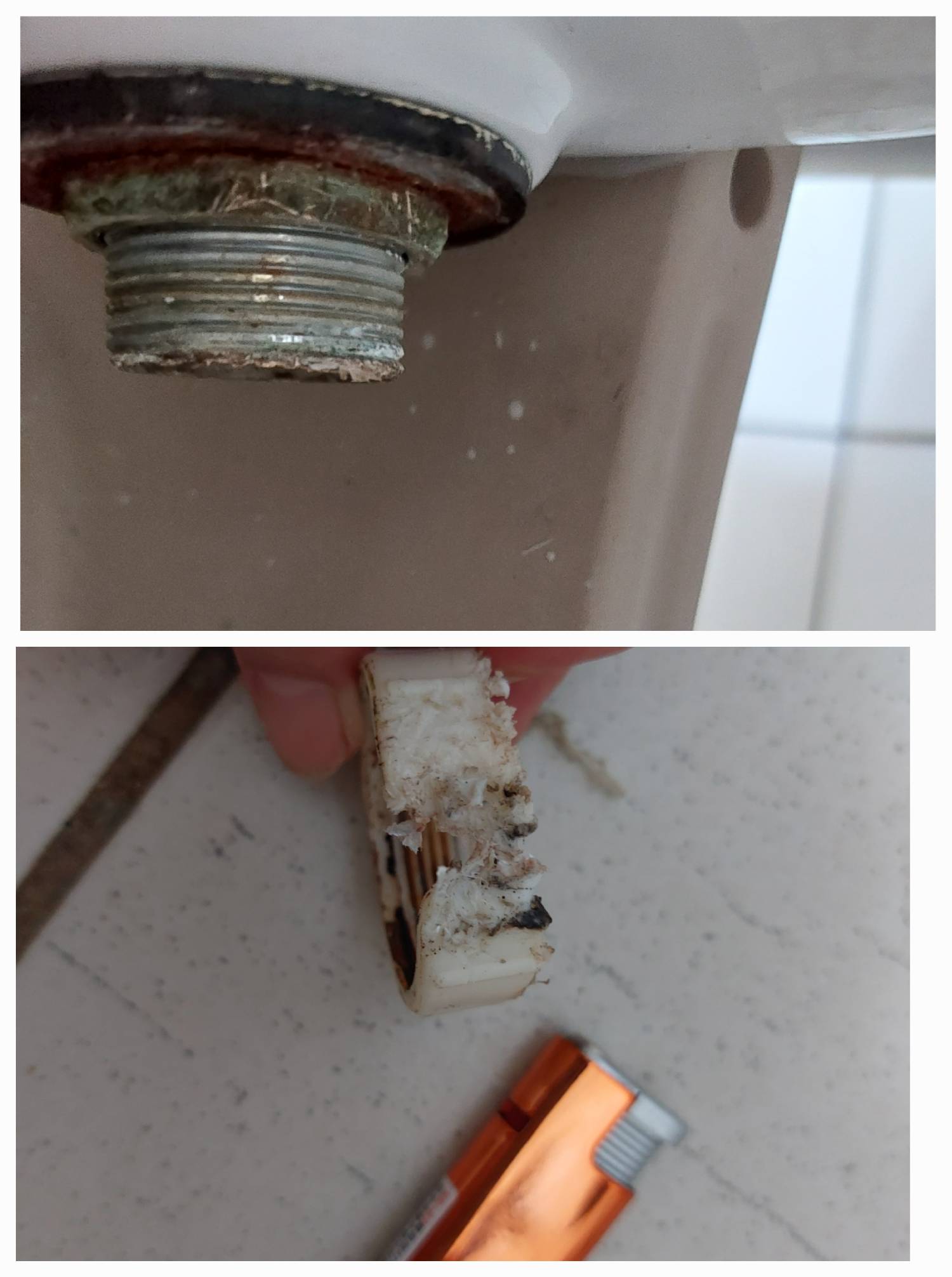 2025-10-12 17:26:00我覺得第一張的塑膠管頭有斷掉 要把舊的管子轉下來卸掉但是要有工具使用 金屬那邊可能有生鏽了不好處理