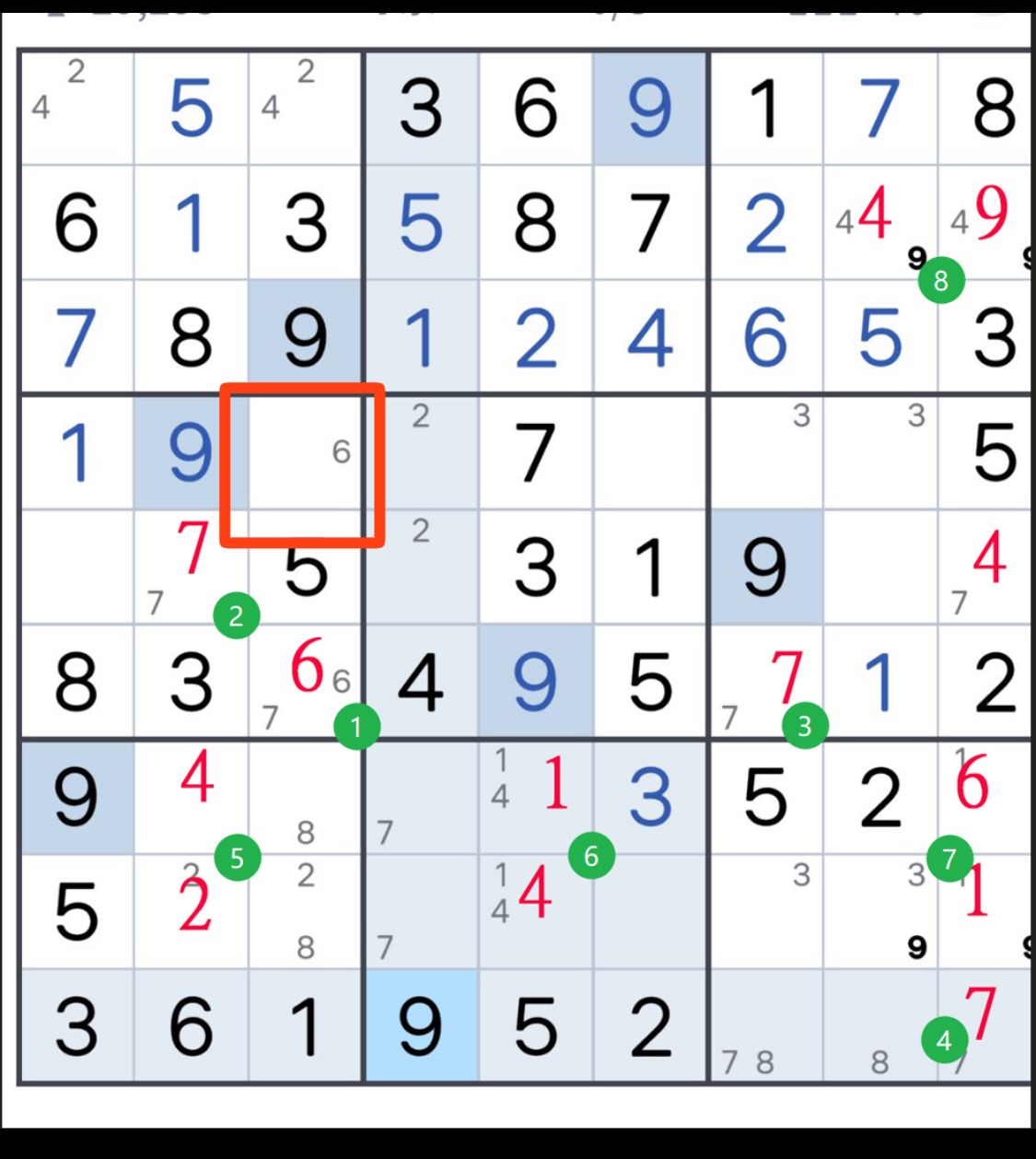 的確會有時候得猜 但應該都是卡很死 你的這張狀況還有很多能看出來的 例如從下往上數的第4橫行 6有解填進去後應該可以解其他的83_495_12這行,你右邊空格不能塞6啊 會跟上面打到所以只能左邊放6 那右邊就是7 這行就解開了你輔助小標有列出7跟6 只有左邊有小標6 你把空格小標通通列滿的話 你就可以看出現在能解誰