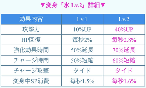 水變身LV2的性能如下