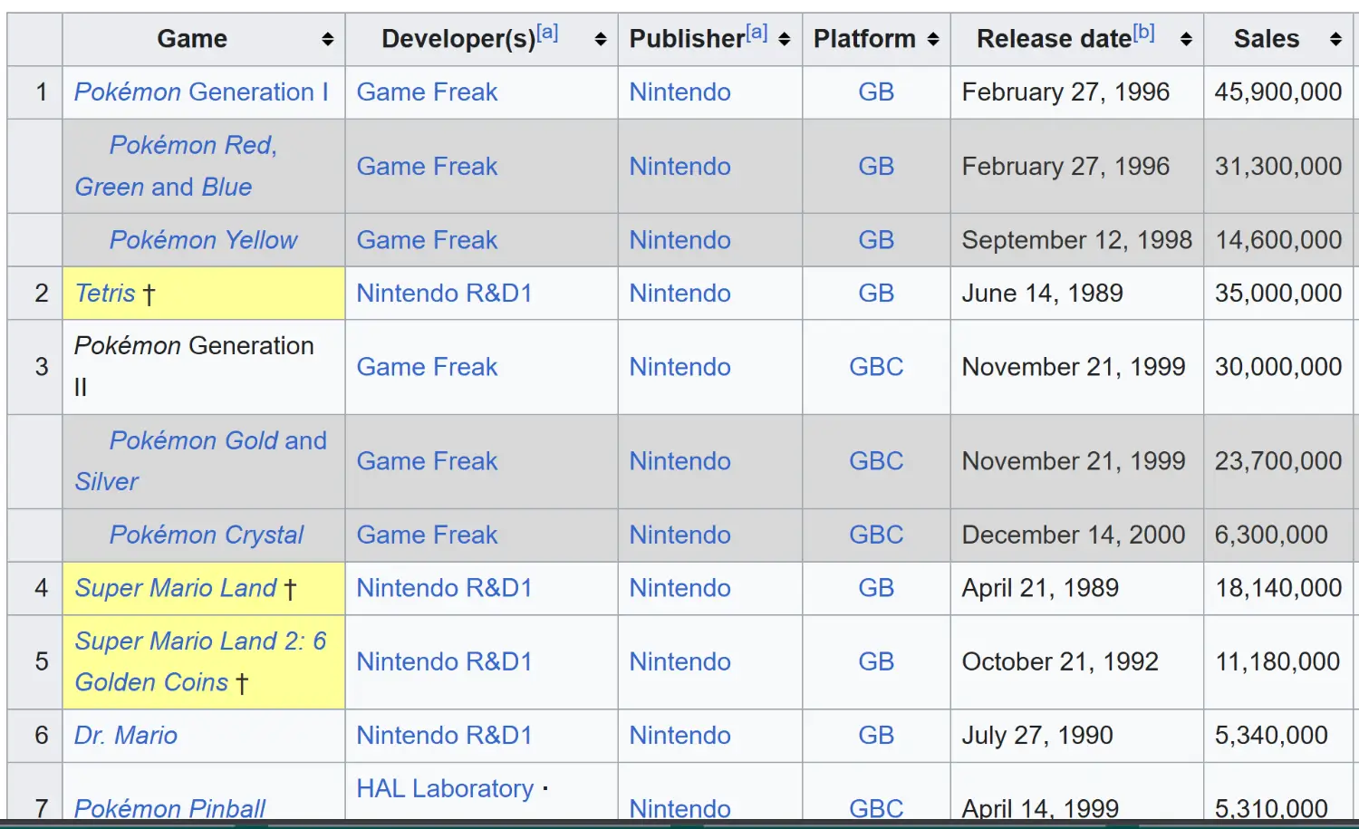 GAME BOY 1989上市 到1996年主機壽命已經超過預期了寶可夢上市後讓主機延命到2003年俄羅斯方塊因為有屯捆銷售