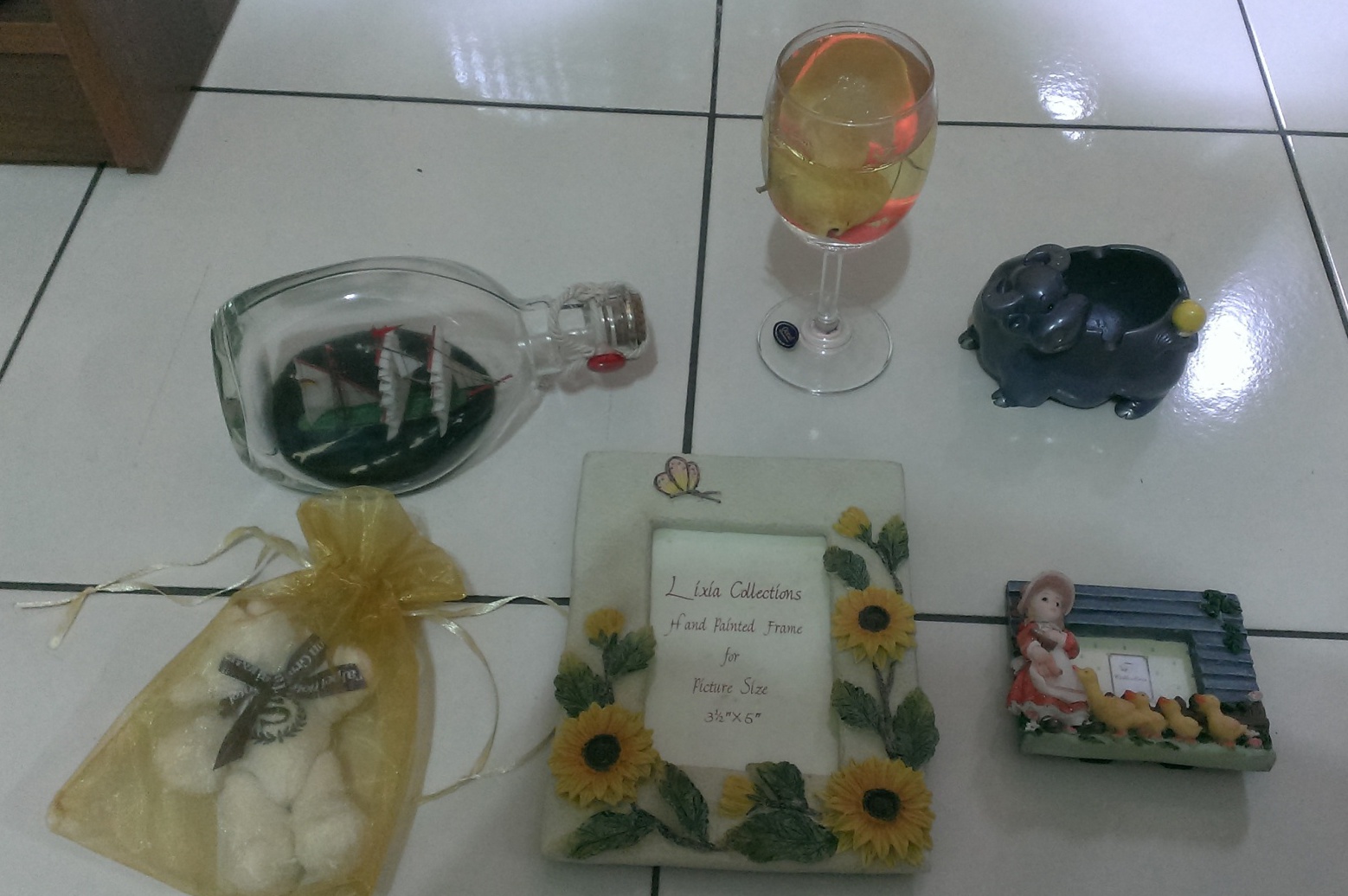物 品:1. 瓶中船擺飾;2. 高腳杯香氛蠟燭;3. 水牛擺飾;