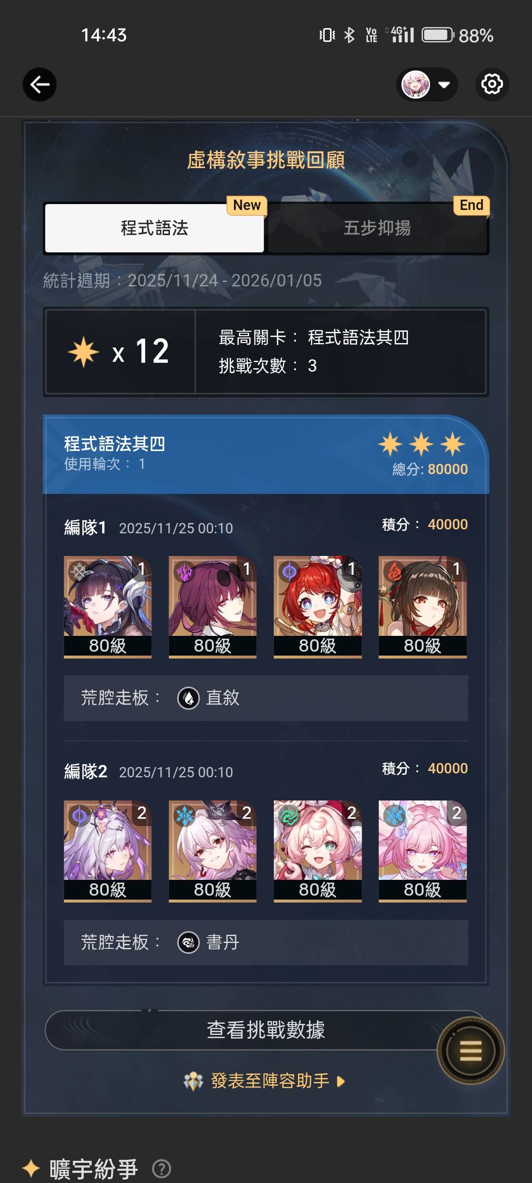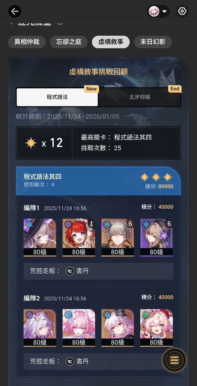 我覺得沒這麼誇張吧下半跟你原本隊伍一樣,也就1t多一點其實虛構來講小黑塔我覺得還是比那刻夏強對了,妳緹寶是10還是11?
